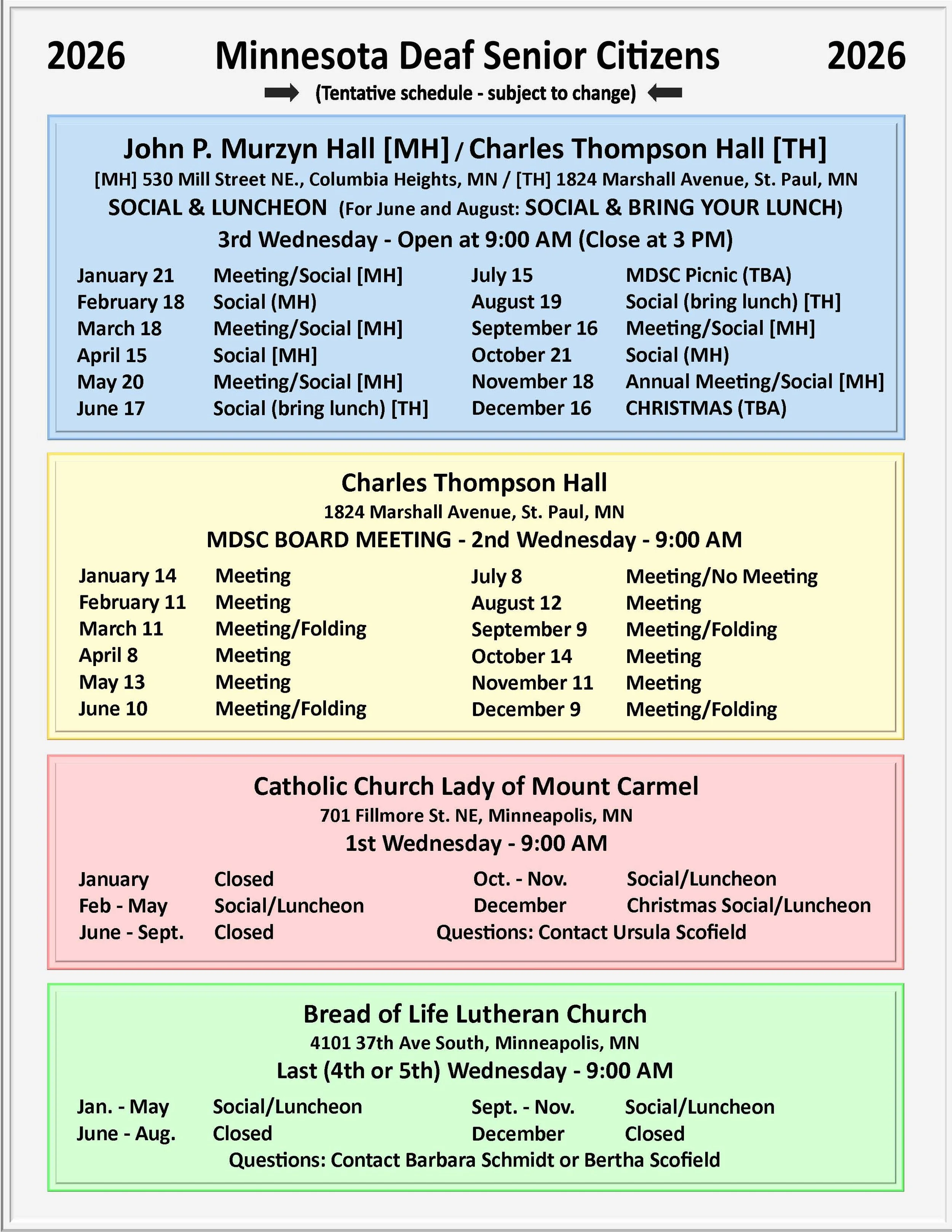 A Non-Profit Organization Providing Social Events For Retired Deaf Citizens of MN